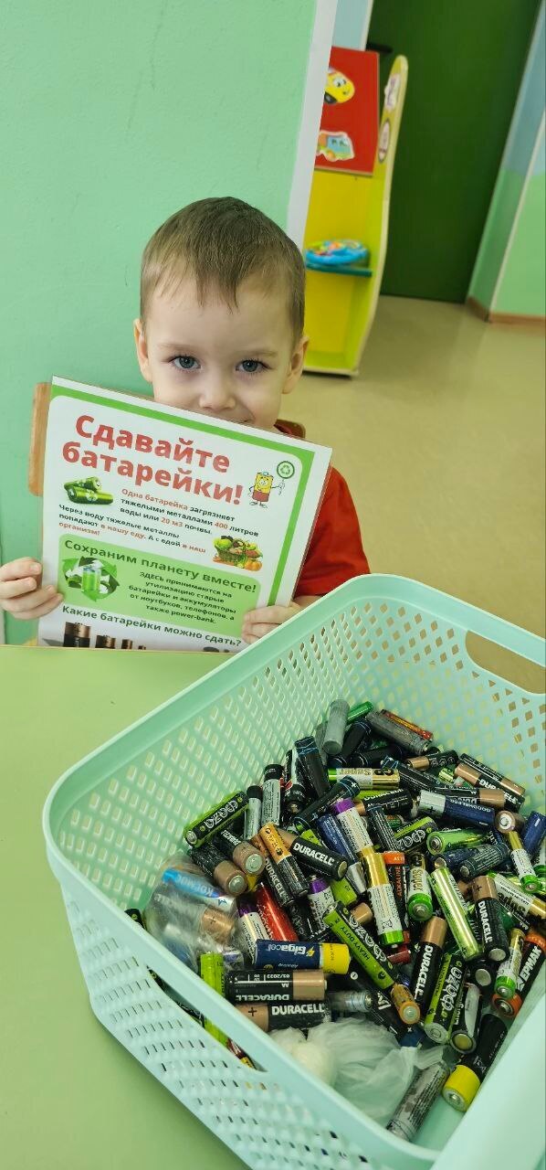Воспитанники активные участники образовательного проекта в Югре «Батарейки сдавайтесь!». Юные эколята знают, что батарейки содержат вредные химические элементы, такие как свинец, кадмий и ртуть. Они могут попадать в почву и грунтовые воды, отравляя окружающую среду и вызывая различные заболевания у живых организмов. Переработка батареек помогает предотвратить загрязнение окружающей среды и снижает риск возникновения экологических катастроф. Ребята сдают большое количество отработанных батареек в экоцентры «Югра Собирает».