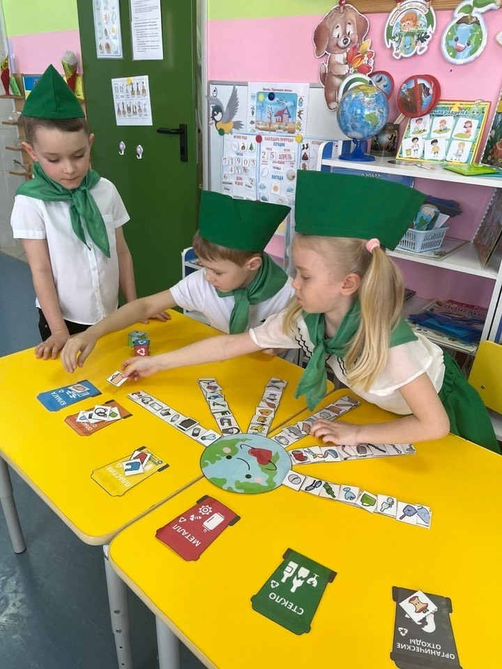 Дошколята в роли юных экологов и исследователей отправляются на защиту родной природы, выполняя задания по раздельному сбору мусора «Сортируем с Эколятами», решают экологические задачи, проходят экологическую викторину «Экологические правила», принимают участие в уборке мусора на территории детского сада «Эколята за чистоту и порядок», подкармливают пернатых друзей, проводят природоохранные и экологические акции «Чистая планета», «Эколята – защитники природы», принимают участие в театрализованном представлении «Берегите планету!»